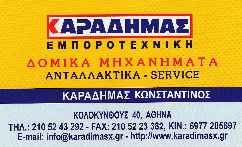 ΚΑΡΑΔΗΜΑΣ ΚΩΝΣΤΑΝΤΙΝΟΣ - ΔΟΜΙΚΑ ΜΗΧΑΝΗΜΑΤΑ ΜΕΤΑΞΟΥΡΓΕΙΟ ΑΘΗΝΑ - ΔΟΝΗΤΕΣ ΜΠΕΤΟΝ ΑΘΗΝΑ
