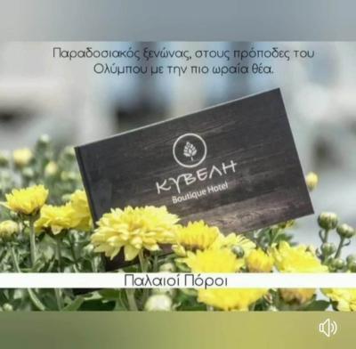 Το Κυβέλη Boutique Hotel βρίσκεται στους Παλαιούς Πόρους, στους πρόποδες του Ολύμπου και σε υψόμετρο 600 μ., σε μια πανέμορφη διαδρομή μέσα στο πράσινο, μολις 7χλμ. από την θάλασσα.