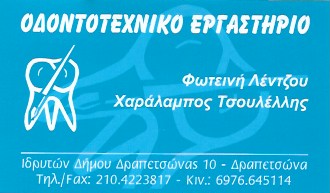 ΤΣΟΥΛΕΛΛΗΣ ΧΑΡΑΛΑΜΠΟΣ - ΛΕΝΤΖΟΥ ΦΩΤΕΙΝΗ -ΟΔΟΝΤΟΤΕΧΝΙΤΗΣ ΔΡΑΠΕΤΣΩΝΑ - ΟΔΟΝΤΟΤΕΧΝΙΚΟ ΕΡΓΑΣΤΗΡΙΟ