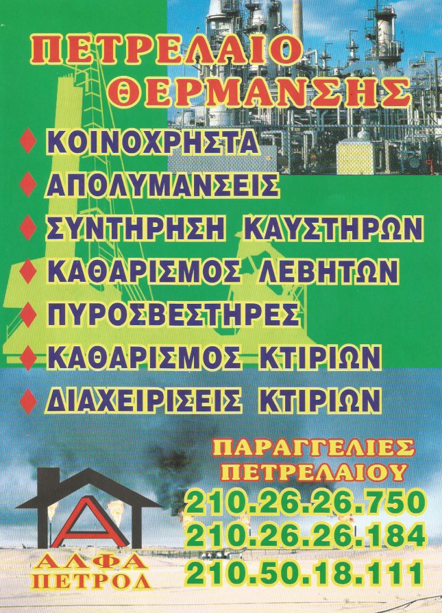 ΑΛΦΑ ΠΕΤΡΟΛ - ΚΑΘΑΡΙΣΜΟΣ ΚΤΙΡΙΩΝ ΙΛΙΟΝ ΑΤΤΙΚΗΣ - ΣΥΝΤΗΡΗΣΗ ΚΑΥΣΤΗΡΩΝ ΙΛΙΟΝ - ΠΥΡΟΣΒΕΣΤΗΡΕΣ ΙΛΙΟΝ