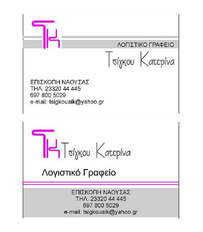ΤΣΙΓΚΟΥ ΑΙΚΑΤΕΡΙΝΗ - ΛΟΓΙΣΤΙΚΑ ΓΡΑΦΕΙΑ ΕΠΙΣΚΟΠΗ ΝΑΟΥΣΑΣ - ΛΟΓΙΣΤΕΣ ΕΠΙΣΚΟΠΗ ΝΑΟΥΣΑΣ