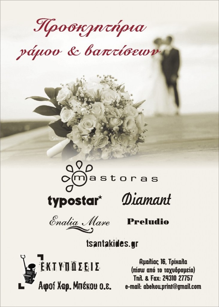 ΑΦΟΙ ΜΠΕΚΟΥ - ΤΥΠΟΓΡΑΦΕΙΟ ΤΡΙΚΑΛΑ - ΠΡΟΣΚΛΗΤΗΡΙΑ ΤΡΙΚΑΛΑ - ΑΦΙΣΕΣ ΤΡΙΚΑΛΑ - ΦΥΛΛΑΔΙΑ ΤΡΙΚΑΛΑ