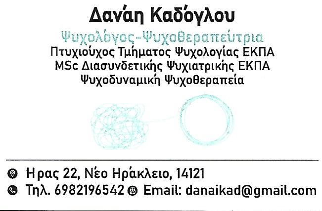 ΔΑΝΑΗ ΚΑΔΟΓΛΟΥ - ΨΥΧΟΛΟΓΟΣ ΝΕΟ ΗΡΑΚΛΕΙΟ ΑΤΤΙΚΗΣ - ΨΥΧΟΔΥΝΑΜΙΚΗ ΨΥΧΟΘΕΡΑΠΕΥΤΡΙΑ ΝΕΟ ΗΡΑΚΛΕΙΟ