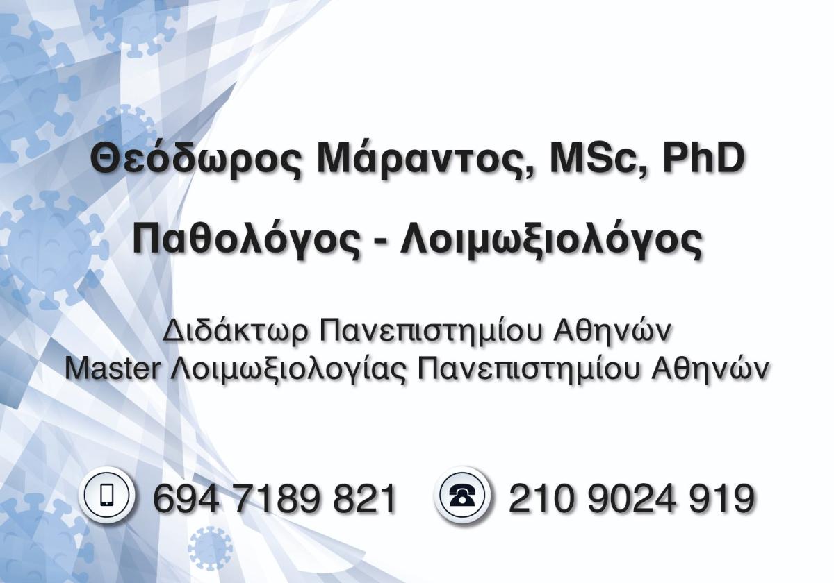 ΘΕΟΔΩΡΟΣ ΜΑΡΑΝΤΟΣ MD, MSc, PhD - ΙΑΤΡΟΣ ΠΑΘΟΛΟΓΟΣ ΝΕΟΣ ΚΟΣΜΟΣ ΑΘΗΝΑ -ΛΟΙΜΩΞΙΟΛΟΓΟΣ ΝΕΟΣ ΚΟΣΜΟΣ ΑΘΗΝΑ