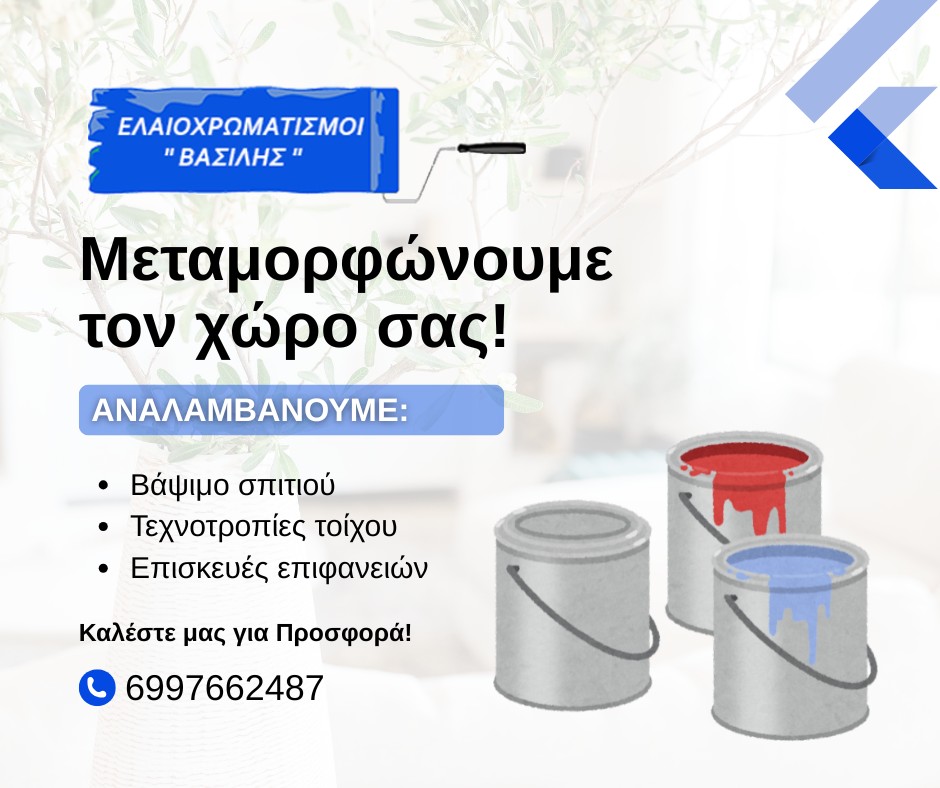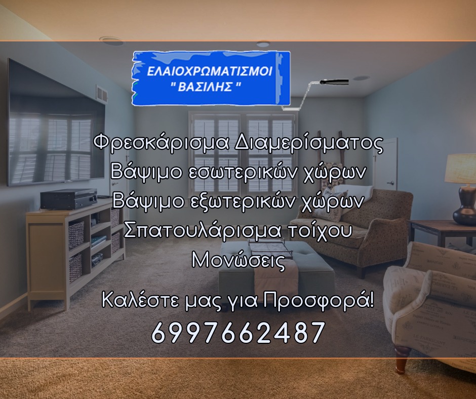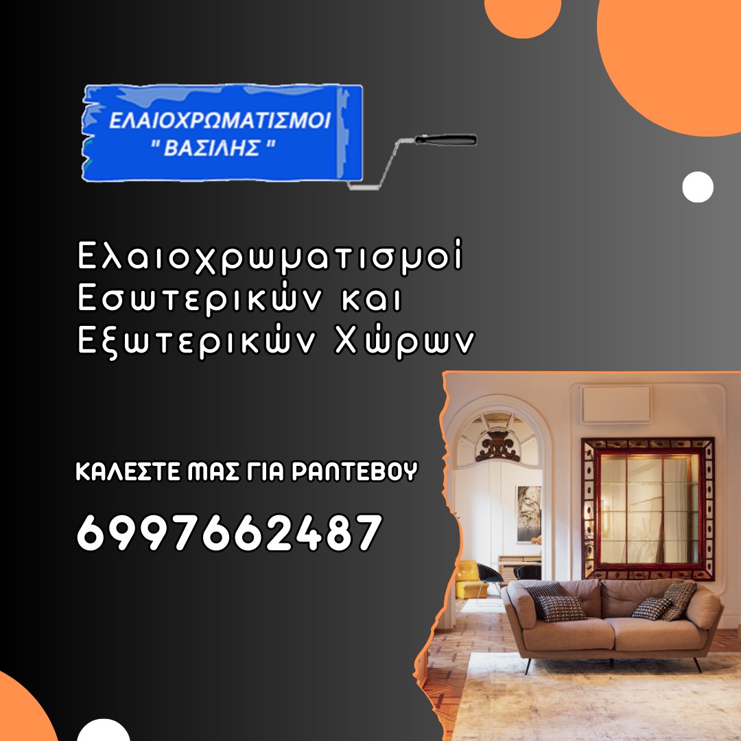 Δραστηριοποιούμαστε στο κλάδο πάνω από 20 χρόνια. Αναλαμβάνουμε τον Ελαιοχρωματισμό, Εσωτερικών και Εξωτερικών χώρων σε όλη την Αττική.