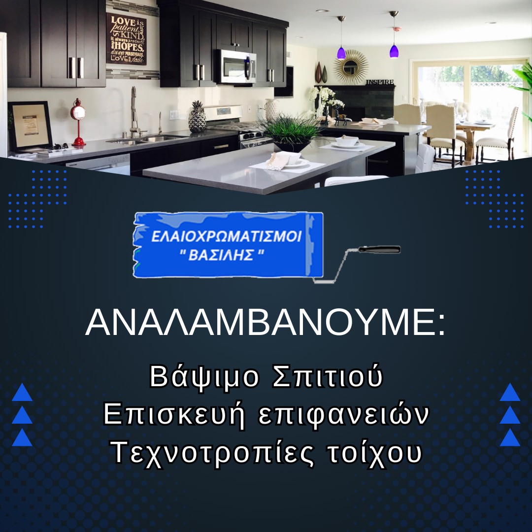 Το συνεργείο μας αποτελείτε από έμπειρο προσωπικό με υψηλή ποιότητα και επαγγελματική υπηρεσία βαψίματος για όλα τα σπίτια σε όλη την Αττική. Εξιδεικευμένο σε νέες Ελαιοχρωματιστές τεχνικές σας προσφέρουμε εγγυημένες εργασίες στις Καλύτερες Τιμές !